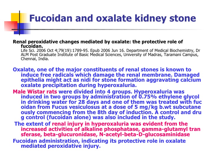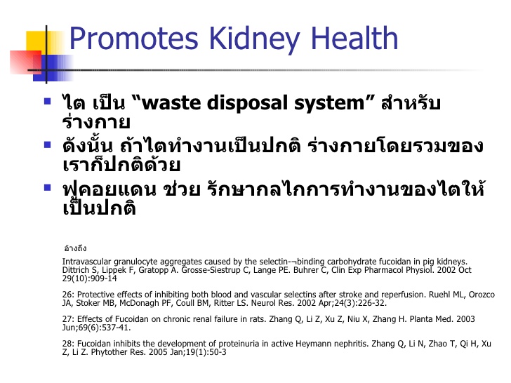 - Dittrich S, Lippek F, Gratopp A. Grosse-Siestrup C, Lange PE. Buhrer C, Clin Exp Pharmacol Physiol. 2002 Oct 29(10):909-14 ฟูคอยแดน ลดและป้องกันการเกิด oxalate kidney stone หรือนิ่วในไต เอกสารอ้างอิง / References