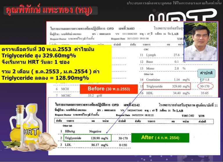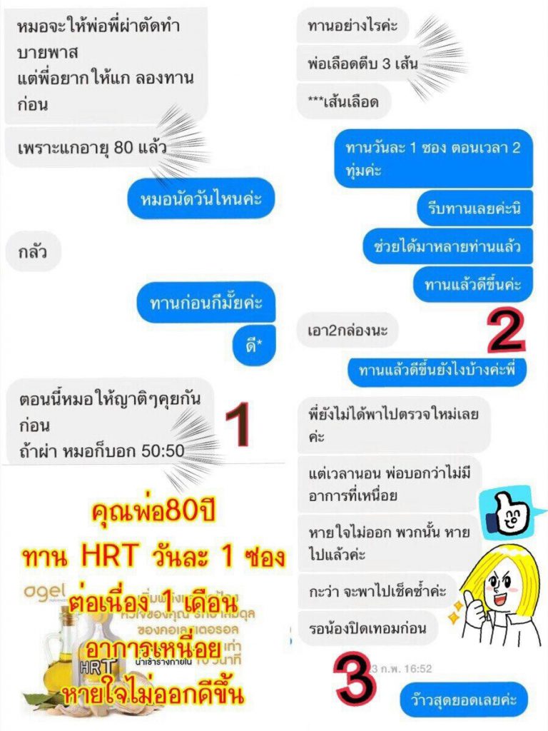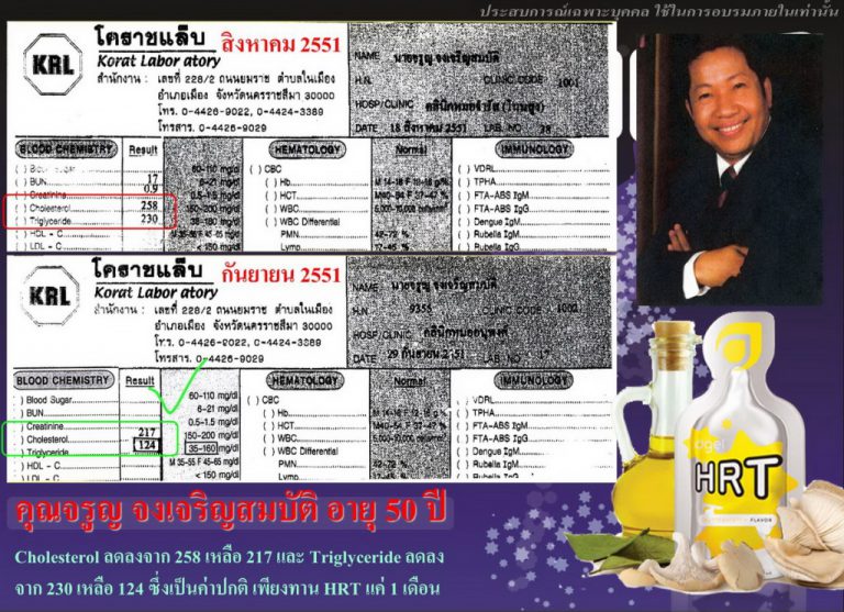 โรคหัวใจ เส้นเลือดในสมองตีบ ทาน HRT 3 สัปดาห์ กระปรี้กระเปร่า สดใสมากขึ้น ค่าเลือดและความดันดีขึ้น