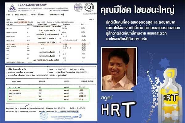 อาจารย์หมอ แพทย์ผู้เชี่ยวชาญโรคหัวใจ ป่วยเป็นโรคหัวใจเอง เวลาออกกำลังกายจะเกิดอาการเหนื่อยง่ายและเจ็บหน้าอกเนื่องจากเลือดไปเลี้ยงหัวใจไม่ทัน และได้รับการรักษาด้วยการทำบอลลูน โดยการกดเส้นลวด หลังจากได้ใช้ผลิตภัณฑ์เจลพลัส HRT อาการก็ดีขึ้น จนปกติ
